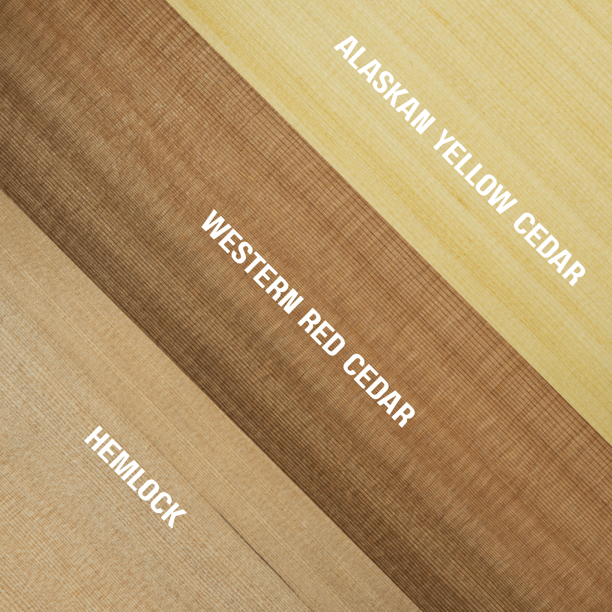 - Clear vertical grain western red cedar, hemlock, and Alaskan yellow cedar
